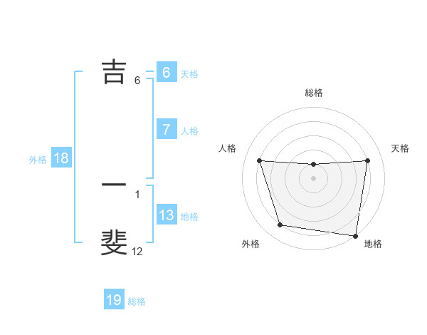 吉 一斐さんの地格は13画の5点!