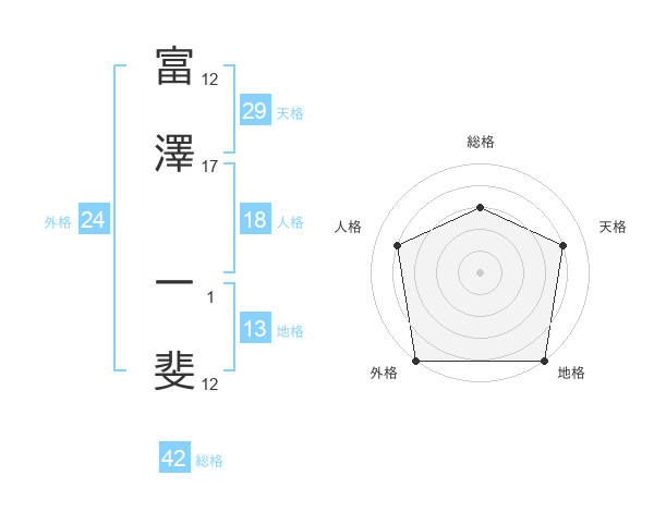 富澤 一斐さんの総格は42画の3点!