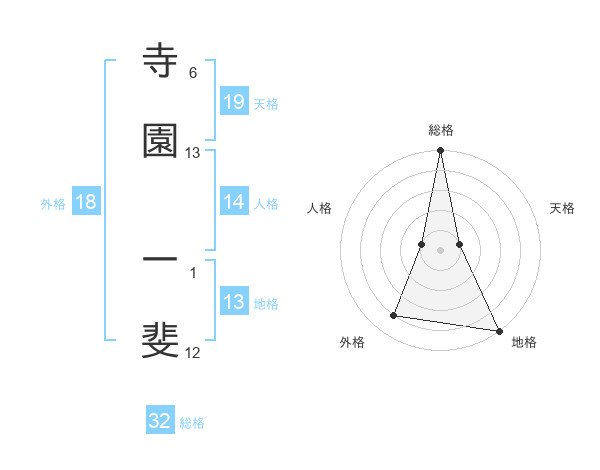 寺園 一斐さんの天格は19画の1点!