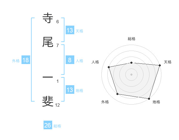 寺尾 一斐さんの天格は13画の5点!