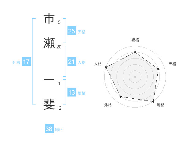 市瀬 一斐さんの総格は38画の4点!