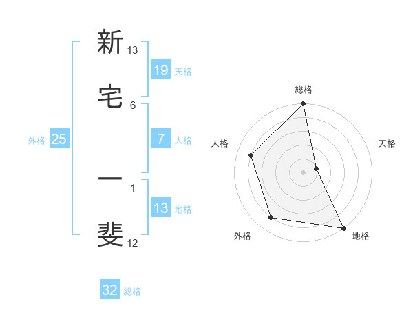 新宅 一斐さんを姓名の画数から五運を鑑定
