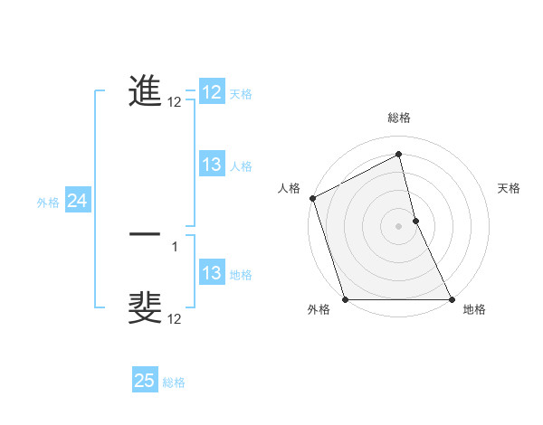 進 一斐さんの外格は24画の5点!