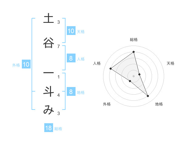 土谷 一斗みさんを姓名の画数から五運を鑑定