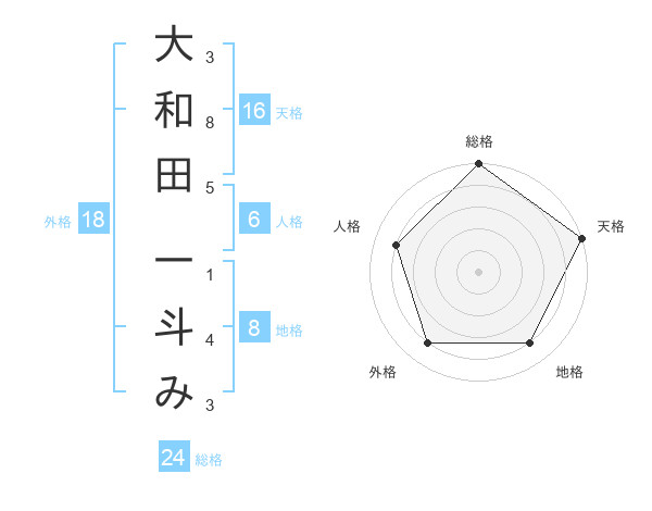 大和田 一斗みさんの総格は24画の5点!