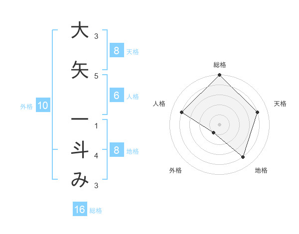大矢 一斗みさんを姓名の画数から五運を鑑定