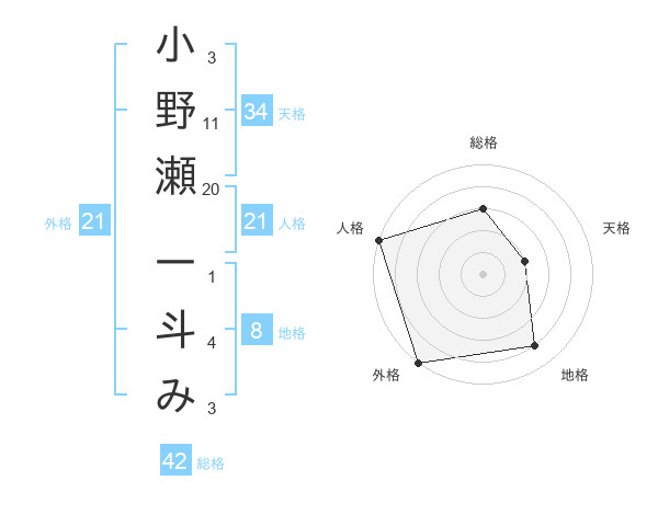 小野瀬 一斗みさんの外格は21画の5点!