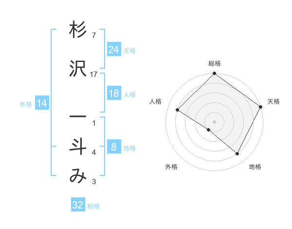 杉沢 一斗みさんを姓名の画数から五運を鑑定