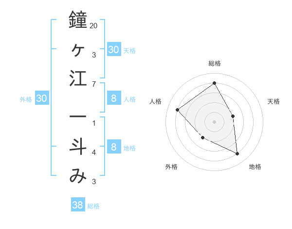 鐘ヶ江 一斗みさんの総格は38画の4点
