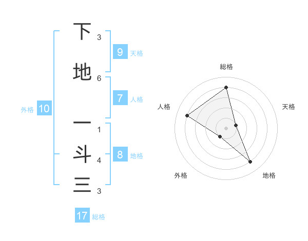 下地 一斗三さんを姓名の画数から五運を鑑定