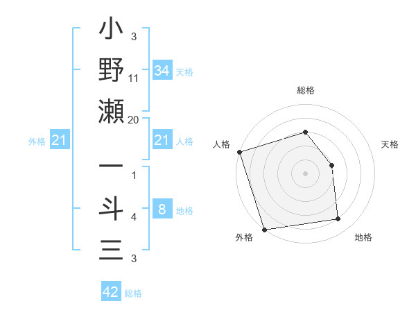 小野瀬 一斗三さんを姓名の画数から五運を鑑定