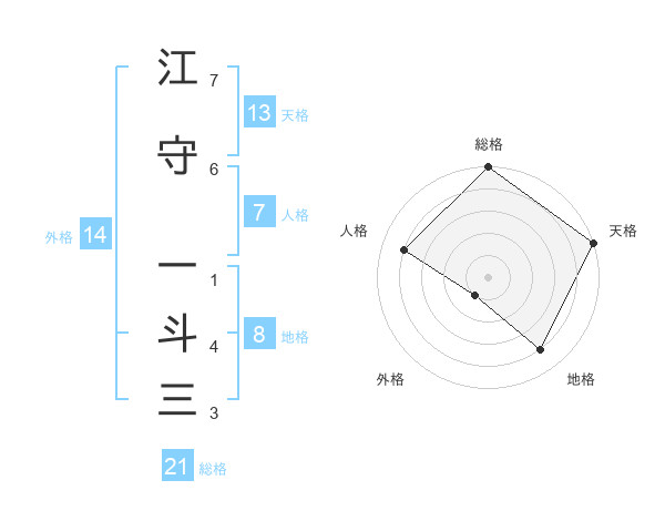 江守 一斗三さんを姓名の画数から五運を鑑定