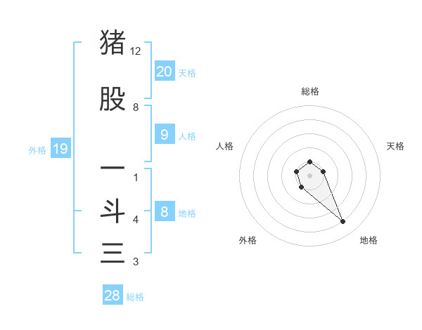 猪股 一斗三さんを姓名の画数から五運を鑑定