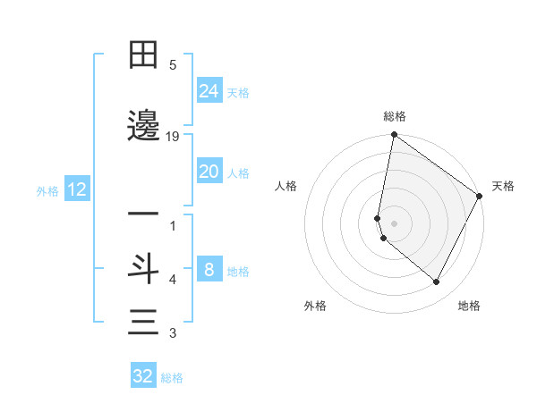 田邊 一斗三さんを姓名の画数から五運を鑑定