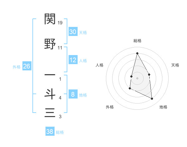 関野 一斗三さんを姓名の画数から五運を鑑定