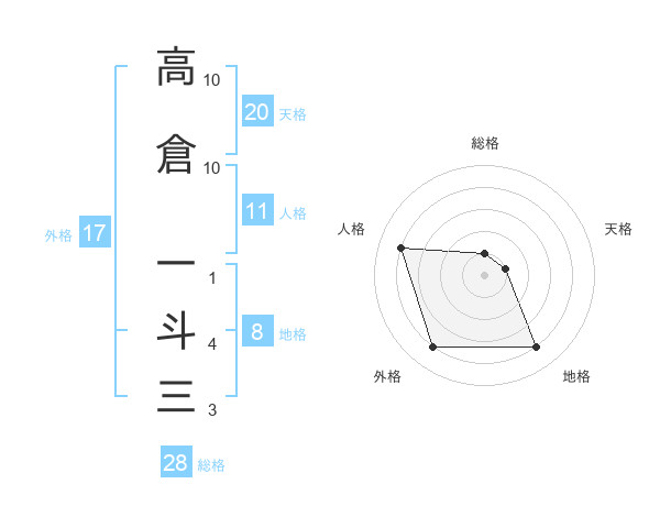 高倉 一斗三さんを姓名の画数から五運を鑑定