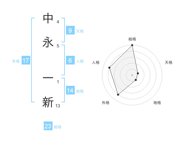 中永 一新さんの総格は23画の5点!