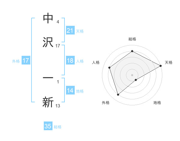 中沢 一新さんの天格は21画の5点!