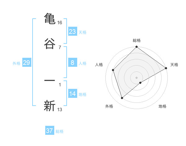 亀谷 一新さんの総格は37画の5点!