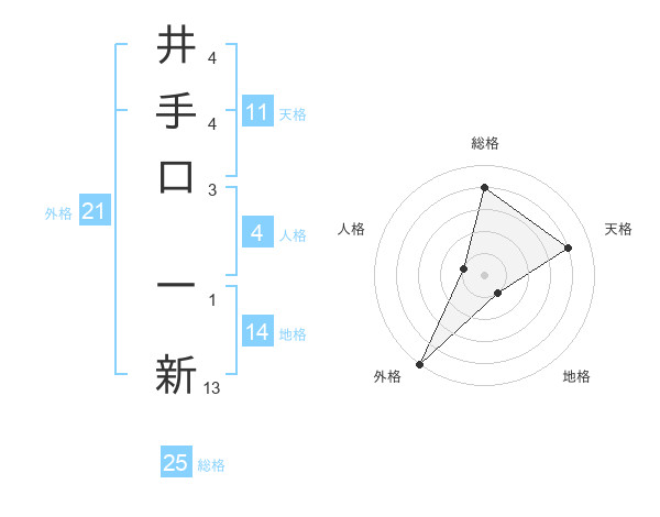 井手口 一新さんの総格は25画の4点!