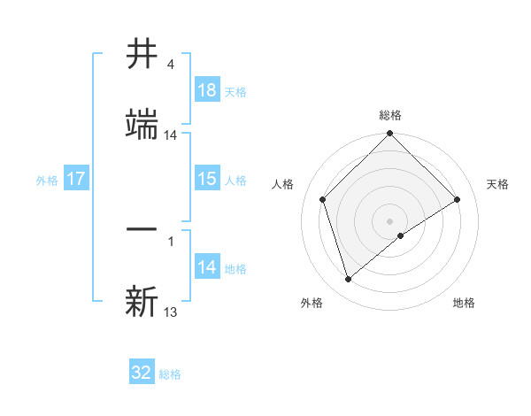 井端 一新さんの総格は32画の5点!