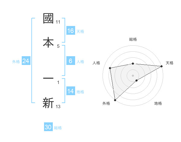 國本 一新さんの天格は16画の5点!