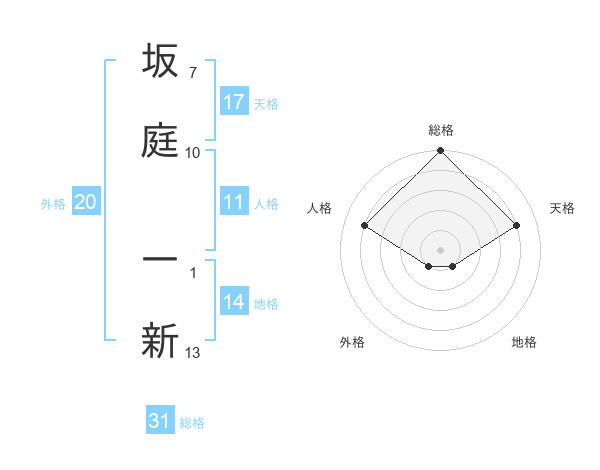 坂庭 一新さんの総格は31画の5点!