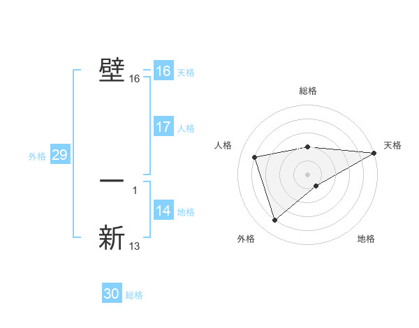 壁 一新さんの天格は16画の5点!