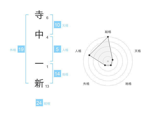 寺中 一新さんの総格は24画の5点!
