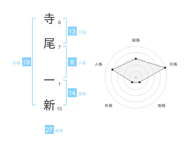 寺尾 一新さんの天格は13画の5点!