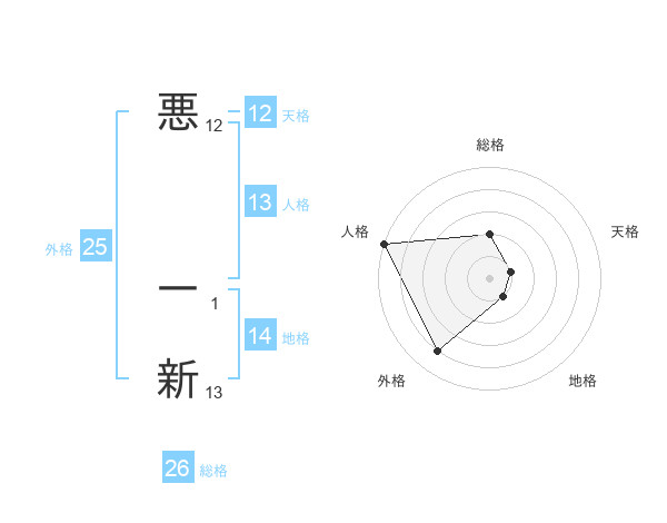 悪 一新さんの総格は26画の2点!