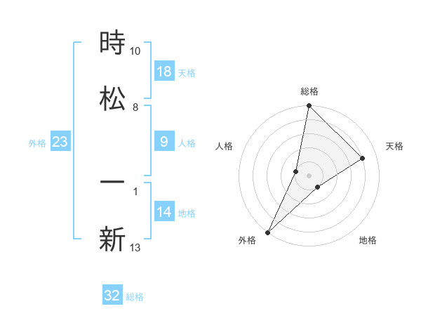 時松 一新さんの総格は32画の5点!