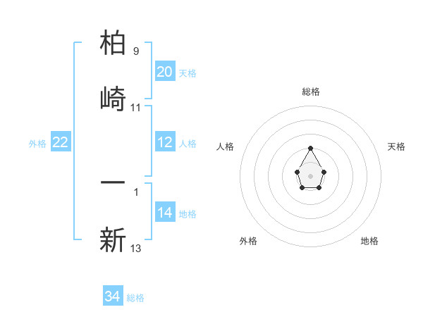 柏崎 一新さんの総格は34画の2点!