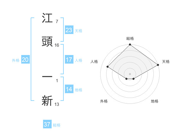 江頭 一新さんの総格は37画の5点!