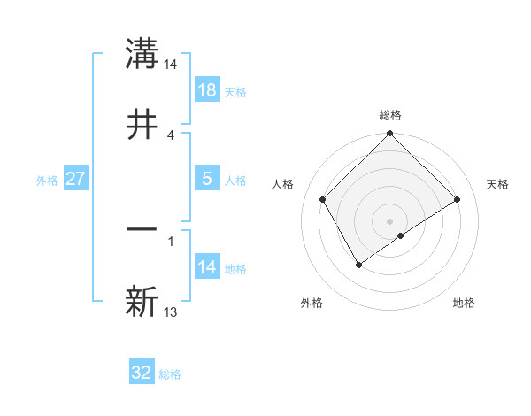 溝井 一新さんの総格は32画の5点!