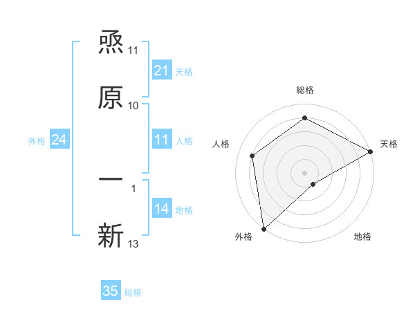焏原 一新さんの天格は21画の5点!