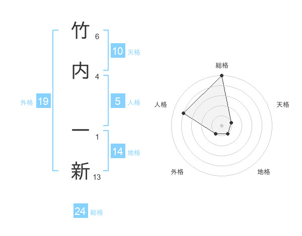 竹内 一新さんの総格は24画の5点!