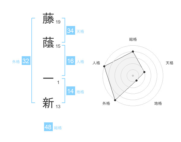 藤蔭 一新さんの総格は48画の4点!