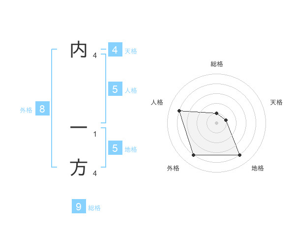 内 一方さんの地格は5画の4点!