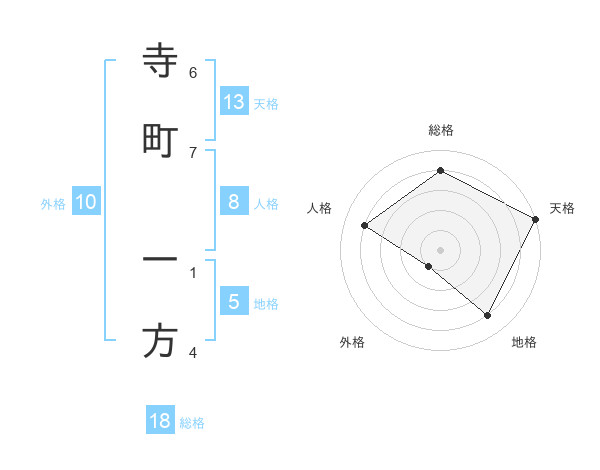 寺町 一方さんの天格は13画の5点!