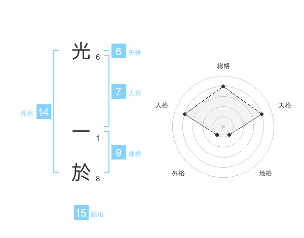 光 一於さんの総格は15画の4点!