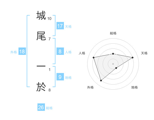城尾 一於さんの天格は17画の4点!