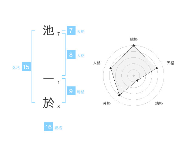 池 一於さんの総格は16画の5点!