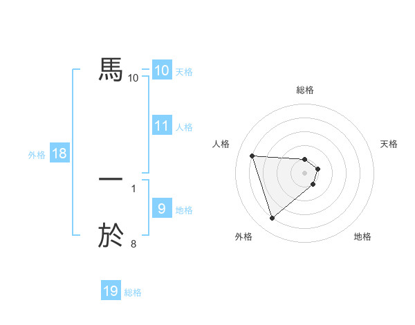 馬 一於さんの外格は18画の4点!