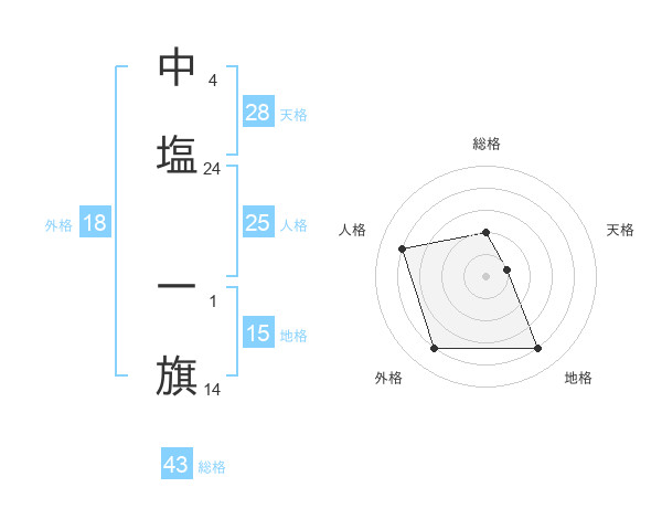 中塩 一旗さんを姓名の画数から五運を鑑定