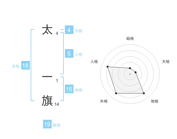 太 一旗さんの総格は19画の1点!