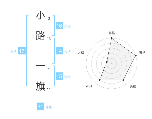 小路 一旗さんの総格は31画の5点!