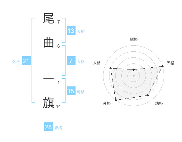 尾曲 一旗さんの天格は13画の5点!