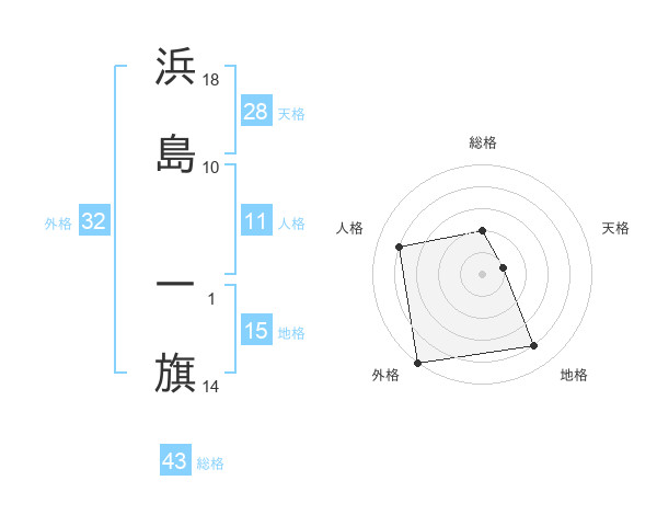 浜島 一旗さんを姓名の画数から五運を鑑定