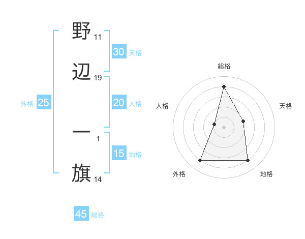 野辺 一旗さんの総格は45画の4点!